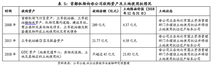 以首都机场为例,2008年1月,首都机场为缓解营运压力,用269亿元收购了母公司首都机场集团部分资产,主要包括首都机场飞行区资产、三号航站楼、三号航站楼相关资产、机场范围内道路、捷运系统、商业面积及其他相关项目、三号航站楼及配套建筑物所在土地使用权及有关债务;2015年向母公司收购三号航站楼D区及配套资产,转让金额为人民币21.77亿元;于2018年7月3日,与母公司订立GTC资产(地面交通中心、其相关设施、土地及其相应的土地使用权)转让协议,公司就收购事项应付母公司的最高对价估计约为人民币45亿元。