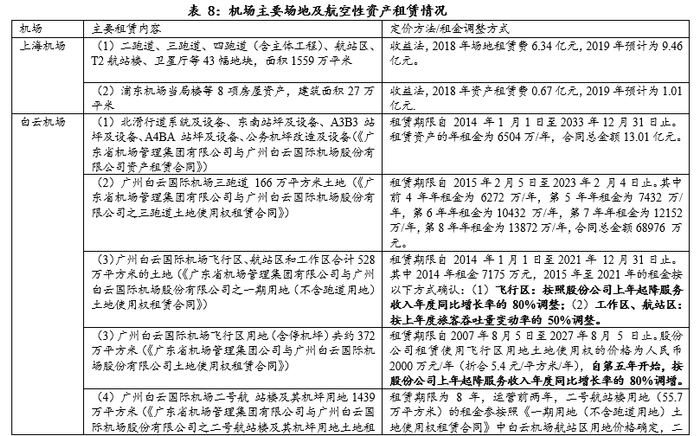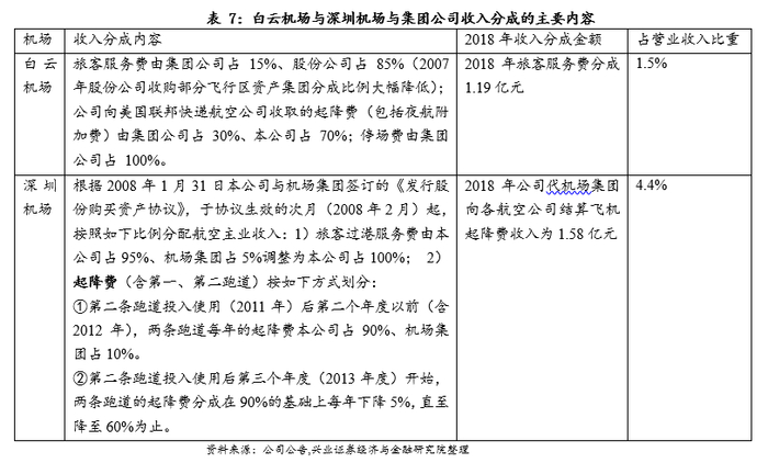收入分成也是股份公司向集团支付租金的一种重要形式。白云机场和深圳机场是收入分成的典型代表,由于飞行区资产的不完整,上市公司与机场就部分航空型收入进行分成,这种“资产付费形式”一方面考虑机场航空业务的公益性,另一方面也考虑随着时间的推移资产利用率的升值。