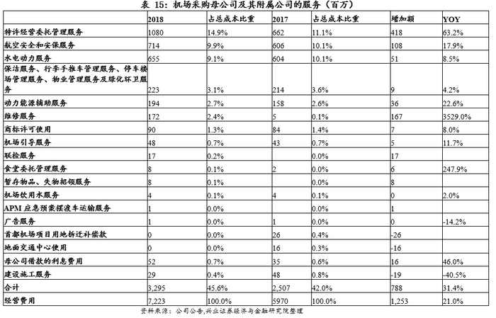 3.2首都机场:高度外包,关联成本占比较高