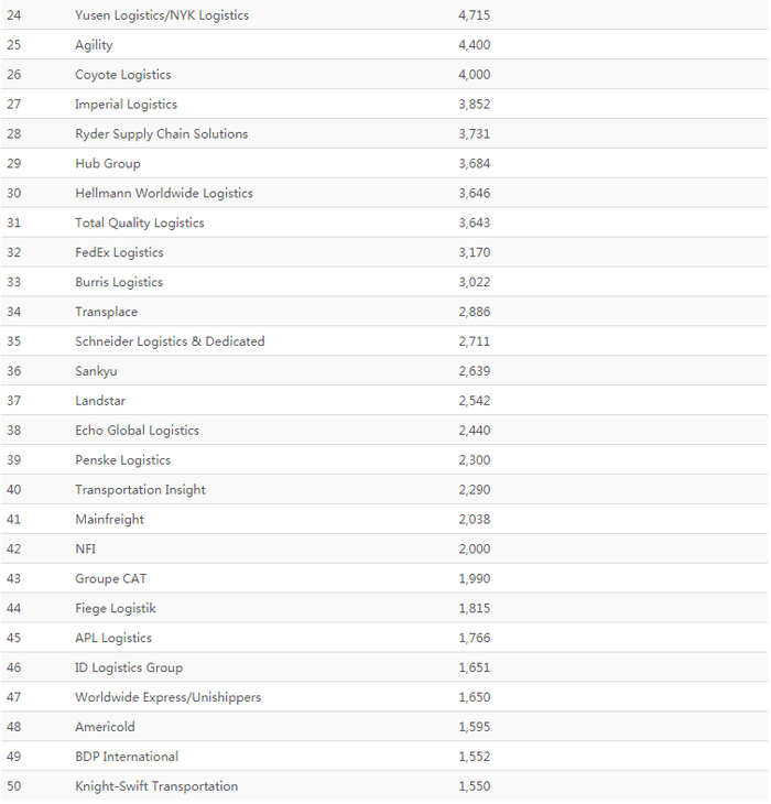 全球第三方物流Top50排行榜