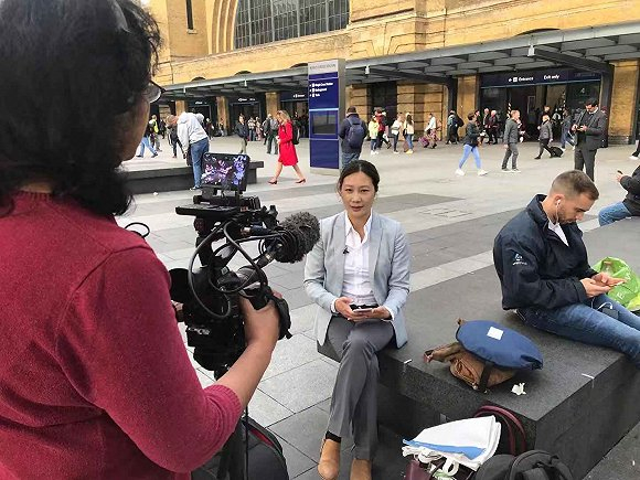 韦入溥在伦敦国王十字车站接受外媒采访 图片由受访者提供