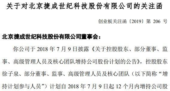 公司高调宣布的增持计划未能如约实施,6月21日,深交所对捷成股份下发关注函,要求捷成股份及其控股股东、相关增持计划人员就增持计划相关问题作出说明。