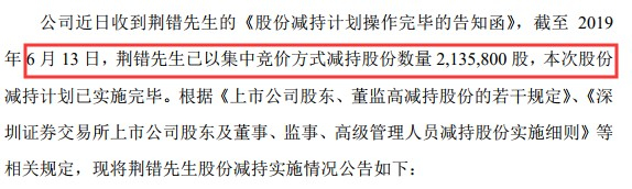 还有根据捷成股份6月14日公告披露,收到公司副总经理荆错的《股份减持计划操作完毕的告知函》,截至2019年6月13日,荆错已以集中竞价方式减持股份数量213.58万股,此次股份减持计划已实施完毕,按当日股价计算,荆错减持获利966.2万元。