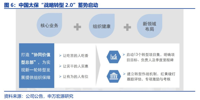 中国太保转型2.0主要包括三个方面:核心业务,组织健康,以及新领域布局。