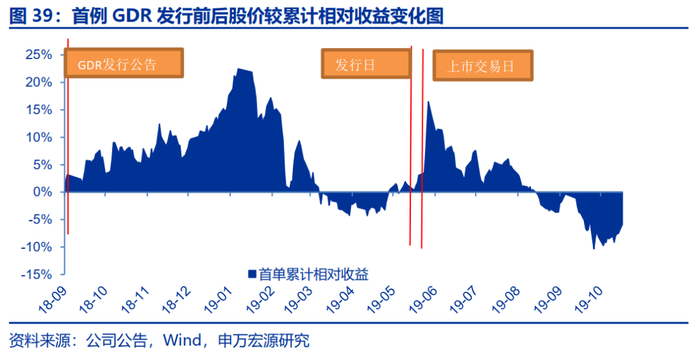 我们复盘了首单GDR发行后A股相对收益变化,发行在首次公告日和发行日后有超额收益,但在可转换A股日前以及发行定价日前相对收益承压。