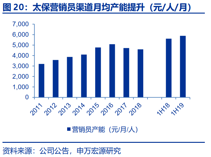 新单面临短期压力不改长期增长趋势,深蹲起跳,2020年新单与价值增长可期。太保寿险总经理潘艳红在多个场合提到寿险转型2.0阶段会面临怎样的调整及公司如何应对时,她以马拉松长跑和中国女排精神为例,向投资者传递公司“坚持拼搏、放眼长期”的理念。我们坚信太保寿险能够打赢转型2.0这场攻坚战,主要系:1.以价值可持续增长为核心的经营理念在太保得到了长期坚守,持续稳健的价值创造能力;2.太保长期以来有一批热爱公司、能征善战、能打硬仗的干部队伍,并且新一届领导班子均经历过转型1.0成功的经验,在太保体系内从业时间均超过10年;3.公司上下对新一轮转型已经形成必要认知,愿意苦练内功、长期坚持。