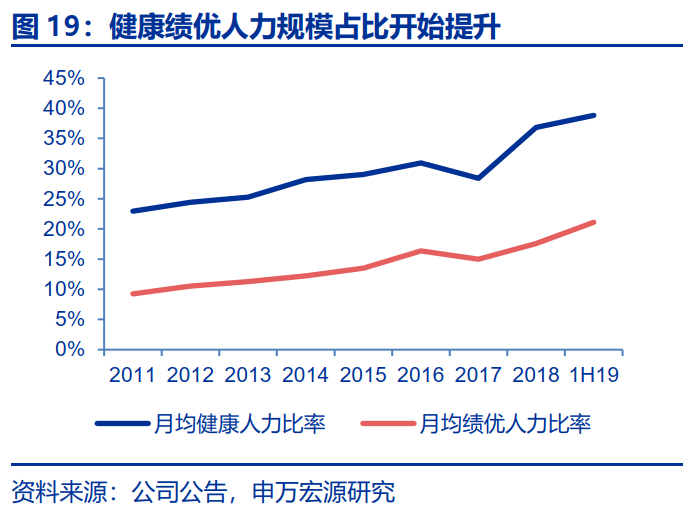 人力方面,公司将实施队伍分层分类画像与精细管理,打造三只关键队伍,做大核心人力,做强顶尖绩优,培育新生代,推动队伍结构不断优化。公司预计2019年末公司期末人力接近80万人,未来人力规模的绝对增长空间不大,但要强化建设一支专业能力强,收入稳定队伍作为压舱石稳定全盘,同时培养做面向高净值人群顶尖绩优队伍,培养作战尖兵,发挥强有力的队伍基础优势。