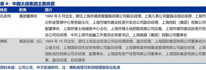 2019年11月以来,公司董事会聘任傅帆为集团总裁,同时银保监会已核准了集团董事长孔庆伟担任太保寿险董事长的任职资格。公司整体高管体系已完善成形。