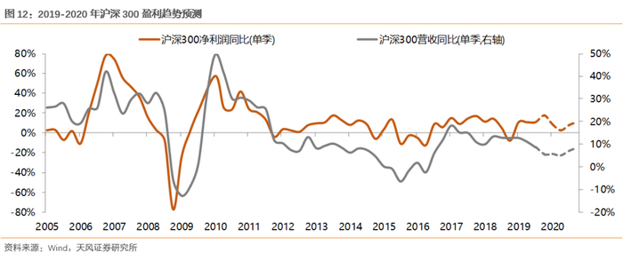 2019年,沪深300的营收增速和净利润增速分别为+10.3%和+12.9%;