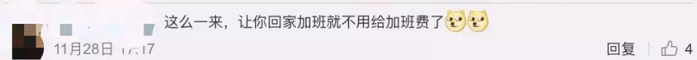 有网友质疑道:“不在公司加班,回家加班?”也有不少网友调侃道,希望自己老板能看到这条新闻。还有网友表示,回家加班就不用给加班费了。