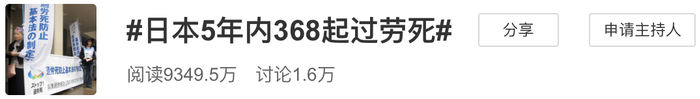 此前,关于“日本5年内368起过劳死”的新闻也在微博上引发众多网友关注。