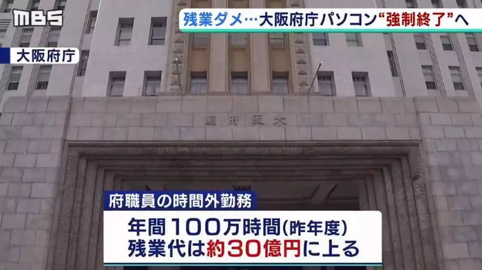 据海外网援引日本《产经新闻》11月27日报道,大阪府将于2020年正式导入强制关机系统,以减少政府职员加班,提高工作效率。据称,大阪府职员每年加班时间约100万小时,加班费总额约30亿日元(约合人民币2亿元),而新系统预算约为5000万日元(约合人民币322万元)。