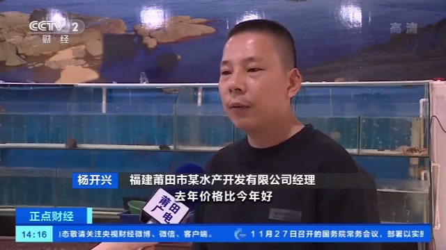 福建莆田市海发水产开发有限公司经理 杨开兴:到南日岛采购的10头鲍,(一斤)44到45左右,去年价格比今年好,去年10头鲍价格大概50几块,今年价格整体下降了十几块。