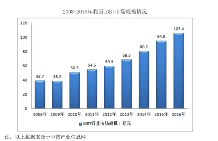 市场人士指出,IGBT诞生于20世纪80年代,进入工业应用时间较晚,虽然目前占整体功率半导体分立器件市场份额仍然不大,但它代表了未来的发展方向,市场规模增长很快。