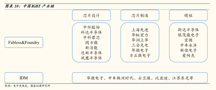 国金证券研报称,目前国内IGBT产业相对薄弱,但处在快速发展阶段,已经形成了相对完整的IGBT产业链。未来随着国内新能源车的放量,中国 IGBT 企业将迎来快速发展及进口替代的良好机遇,看好国内IGBT龙头公司。