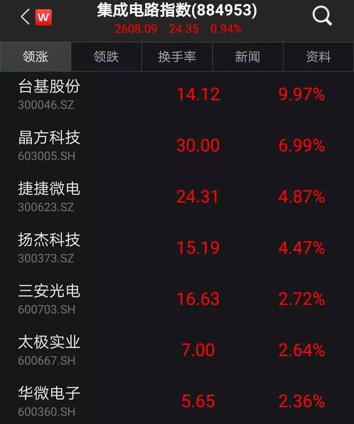 受利好因素刺激,功率半导体概念股今日逆势上涨。截至11月29日收盘,台基股份股价涨停,此外,捷捷微电、扬杰科技等涨逾4%,华微电子涨逾2%。