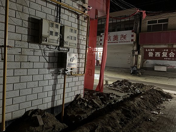 界面新闻记者在黄递铺乡的街道上看到,有用户已经装备了燃气公司的仪表和管线,但道路两侧的燃气管线还在安装施工过程中,挖出的砖块与泥土还未回填。