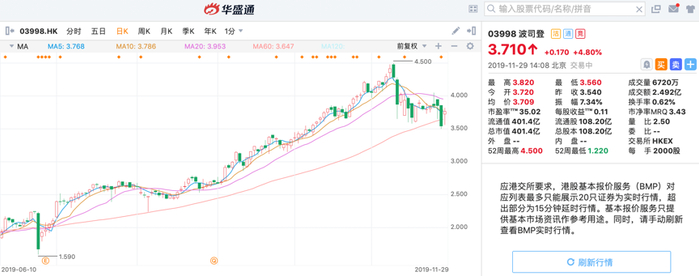 11月28日晚,国产羽绒服霸主波司登(03998)发布2019年9月30止六个月的业绩报告。业绩发布后,波司登股价盘中一度上涨近8%。截至发稿,波司登上涨4.80%,报3.71港元每股。