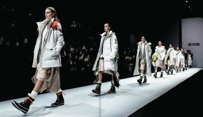 在打开中高端市场的过程中,波司登积极地在国际舞台上传递“羽绒服专家”的品牌信号。下图展示的是波司登作为独立官方邀请品牌,登陆纽约时装周走秀时的场景,相信越来越多的营销活动将在未来进一步打开羽绒服的中高端市场。