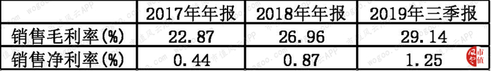 2019年前三季度,公司毛利率29%,因产品结构改善而有了显著的提高,但是净利率只有1.25%。