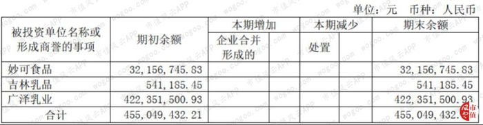 其中,2015年收购妙可蓝多(天津)食品时形成了0.32亿商誉,2016年实施资产置换时形成了4.23亿商誉。现在,仅有吉林乳品54万商誉全额计提减值准备,因为吉林乳品经营用地被政府征收。