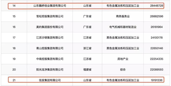 与张学信平素为人低调相似,信发集团也极少出现在各大知名排行榜中,时间财经查阅《2019胡润百富榜》,并未见其身影。2019年8月,全国工商联发布《2019中国民营企业500强》榜单,山东共有61家企业上榜,入围数量居全国第三。