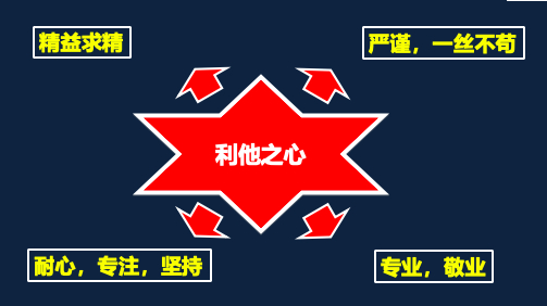 我总结了中国提出的工匠精神的四个方面:① 精益求精;②严谨,一丝不苟;③耐心,专注,坚持;④专业,敬业。
