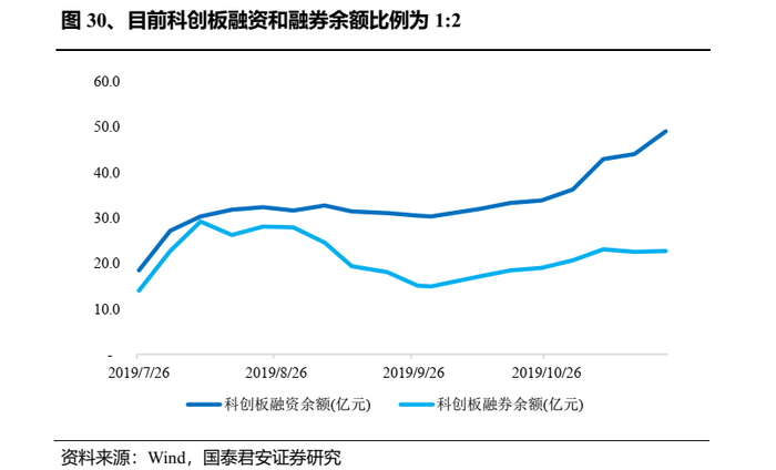 制度松绑下,融券业务有望持续扩容。科创板在融券机制上进行了制度创新,允许上市后即可融资融券,同时允许战略投资者和公募基金作为融券供给方,券源扩容带动科创板融券和融资余额比例达到1:2,远高于主板的1:71(截止11月22日)。“卖空”有助于市场价格发现,在注册制持续推进下,未来主板公司的券源有望进一步扩容,带动行业融券业务扩张。