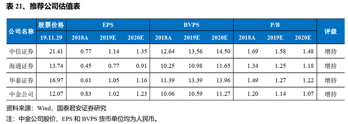 头部券商ROE表现将明显优于行业平均。头部券商在资产端扩张和负债降成本方面更具潜力,财富管理、投行和资管业务方面优势明显,在未来行业ROE上行的趋势下,头部券商ROE表现将明显优于行业平均。