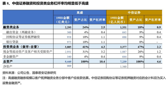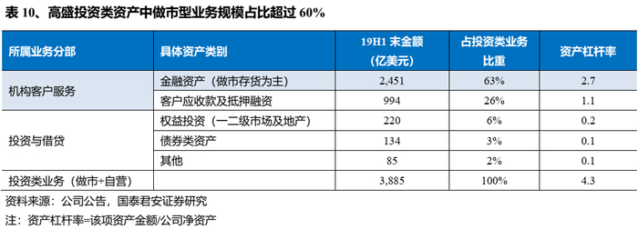 国内头部券商投资业务以自营为主,收益率波动较大,负债成本较高的背景下,高杠杆易加大负利差风险。