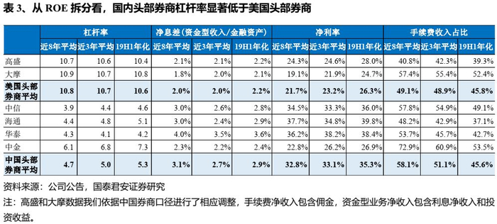 2.1. ROE拆分:杠杆率明显低于美国头部券商