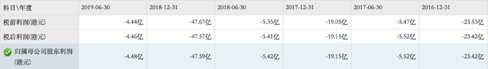 与此同时,正如前文所述,中央商场的业绩开始大滑坡。另一家上市公司雨润食品的业绩早在四年前便已陷入泥潭,从2015年上半年至2019年上半年,累计亏损高达124.4亿港元。其中,2018年便亏损47.59亿港元;2019年上半年,雨润食品营业收入虽然有小幅回升,但是依旧亏损了4.88亿港元。