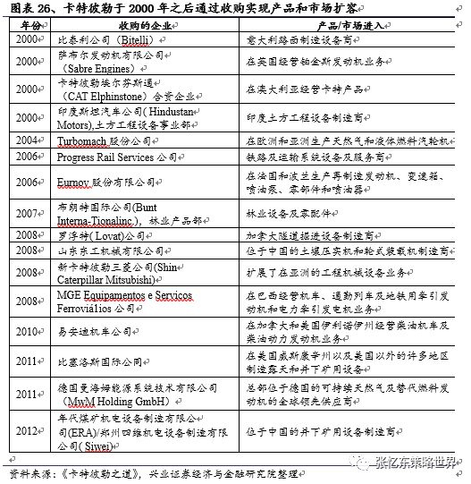 进入21世纪,大宗的超级繁荣周期推动卡特彼勒通过收购的形式快速扩展产品线,实现矿业和能源等新领域的扩张。卡特彼勒逐渐完成了建筑机械、矿用设备、发动机和燃气轮机等领域的庞大产品组合。