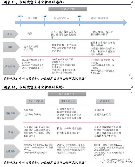 卡特彼勒的全球化扩张路径可以分为3个路径,