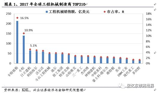 兼容并蓄,卡特彼勒的中国的市场份额在持续提升。2013 年,卡特彼勒在中国挖掘机的市场份额达到7.6%,超越小松;2017年市场占有率为13.2%。