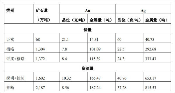 该金矿探明+控制级别的金资源量165.47吨、银653.17吨。