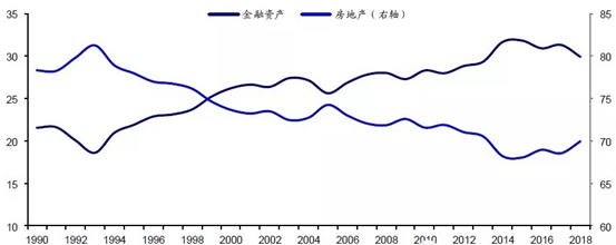 (中国居民金融资产与房地产占比 数据来源:Wind)