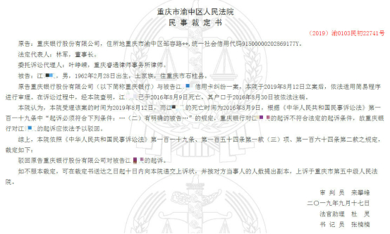 原标题:人死了三年还因信用卡纠纷遭起诉 重庆银行管理存漏?