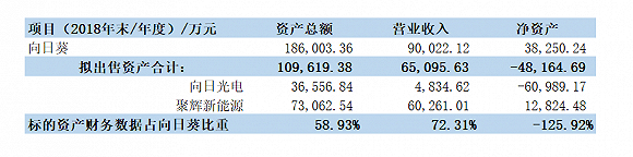 从财务数据出发,此次出售的标的资产,经审计后2018年资产总额占公司比重达58.93%,营业收入占比达72.31%。虽然亏损,但作为向日葵的重要组成部分,为何还要出售?