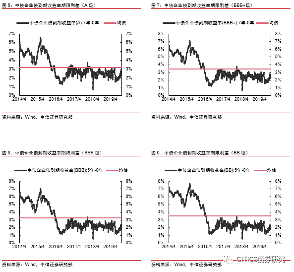 鉴于非流动性补偿往往与估值变化混在一起,很难区分开来加以直接观察,这里我们提出一个基于交易视角的非流动性补偿的间接观察指标,即低等级信用债的期限利差。信用债期限利差反映的是投资者因承受经济、金融环境长期限不确定性,而要求的补偿,与非流动性补偿的性质不同,但二者来源都是长期限带来的不确定性,因此期限利差可为非流动性补偿提供一定参考。