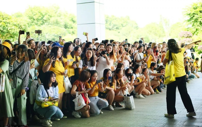 因为怕粉丝间“引战”牵扯艺人,“芦苇”们都压低了嗓音,但心里较劲得很。大家商量着,等待的时候要低调,可一旦鹿晗出现,10个人也要撑出100个人的气势,无论如何,阵仗绝对不能输——这通常是粉丝们接机的“初心”之一。