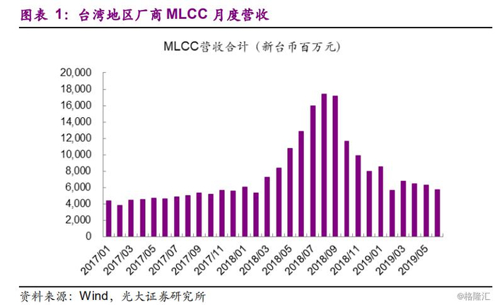 2017年,部分MLCC日本厂商退出常规的低利润MLCC产能而转向其他高价值产品,导致去年前三季产品大幅涨价,引发厂商及销售渠道恶意囤货。而在第四季开始,随着行业新产能补充及需求下降,MLCC进入下行周期,价格大幅下行,行业在今年前三个季度处于去库存状态。