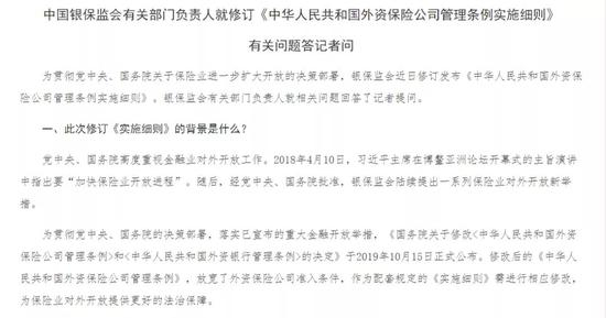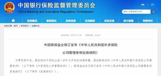 刚刚,银保监会发布新版《外资保险公司管理条例实施细则》(简称《实施细则》)。
