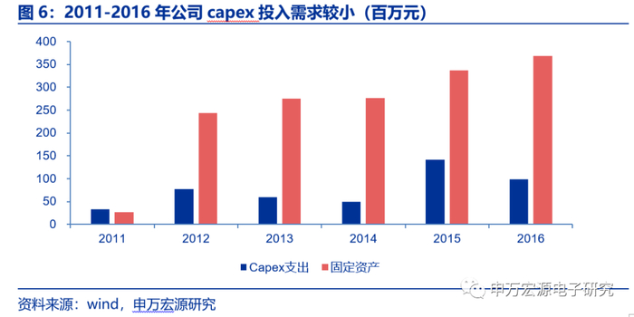 通过收购前瞻布局LDS产能,致使后续数年Capex投入需求低。当时市场上的主流天线方案以弹片和FPC为主,LDS方案的天线需求尚未爆发,仅部分高端机开始渗透。公司通过此次收购获得了账面价值2.2亿、净值1.1亿元的生产设备,包括15台LDS设备以及大量的测试仪、注塑机等常规设备。公司LDS产能一举进入全球三,产能储备充裕。市场对于公司固定资产偏低有一定的疑虑,实际上是源于公司通过此次收购进行了充足的设备与产能储备,后续几年得益于设备的复用,整体Capex投入需求较小。2011-2016年间,公司固定资产的增加主要系历次收购所贡献。