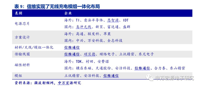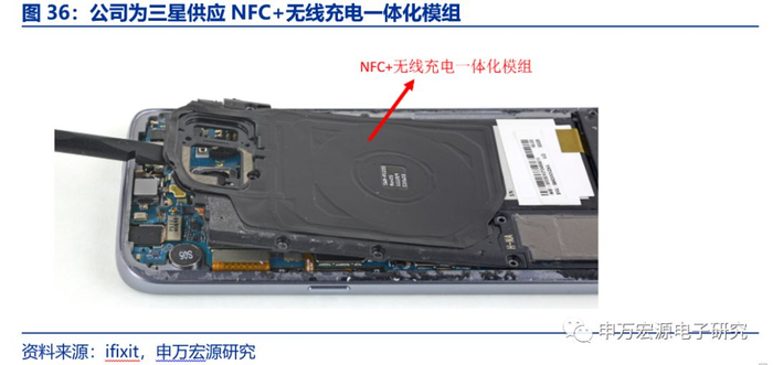 具备NFC+无线充电一体化模组能力。NFC天线和无线充电线圈通常各自占用较大面积,而终端的设计追求轻、薄,因此二者存在矛盾。信维基于在天线射频的能力,其一体化模组通过实现将无线充电和NFC线圈共用的形式,可极大减少整个模块的占用空间,并降低总成本。三星旗舰机型便采用一体化模组方案,未来有望向其他客户进行推广。