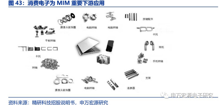 目前MIM金属件整体渗透率仍然较低,主要由苹果、三星等消费电子在其产品中部分使用,未来随着其不断拓展 MIM 产品在其智能产品中的应用,这也将引领其他手机企业规模化应用该产品,从而进一步带动 MIM 行业市场的持续发展。