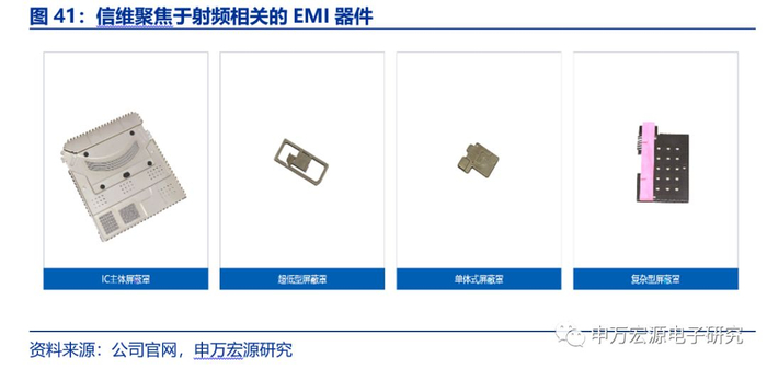 信维聚焦于射频相关的EMI器件,立足于基础材料研究。公司基于自身的核心能力圈,从射频出发,主要聚焦在和射频相关的EMI/EMC器件。相较于传统的精密结构件企业,公司的竞争优势就在于多年来在泛射频领域积累下的相关经验,对于电磁屏蔽有更强的技术储备与行业理解。战略上,公司仍然立足于基础材料研究,持续进行包括各类吸波材料、微波复合材料、电磁屏蔽材料等的前沿研究。公司自17年起便为大客户供应EMI/EMC以及其他部分金属结构件。随着公司在EMI材料上的不断积累带来竞争力的提升,叠加5G催生的新需求带来的增量空间,预计公司在大客户的料号与份额将持续提升,EMI/EMC精密件将成为第三成长动能。