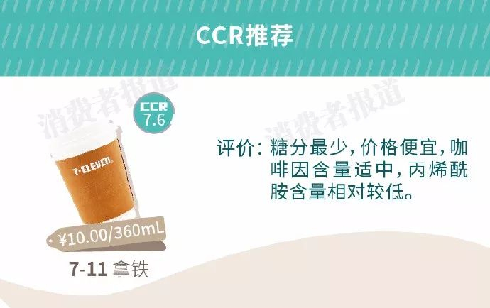 在不额外添加糖的前提下,7-11属于“低糖”,咖啡因含量适中,丙烯酰胺含量较低,对身体负担较少;汉堡王不够提神,丙烯酰胺含量较高,不予推荐。