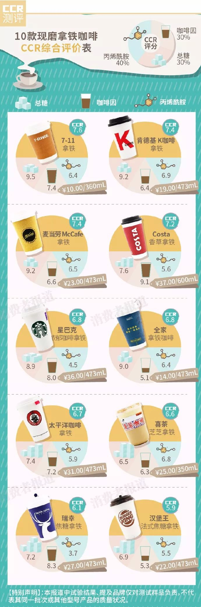《消费者报道》测评10款现磨拿铁咖啡:7-11较好,汉堡王垫底
