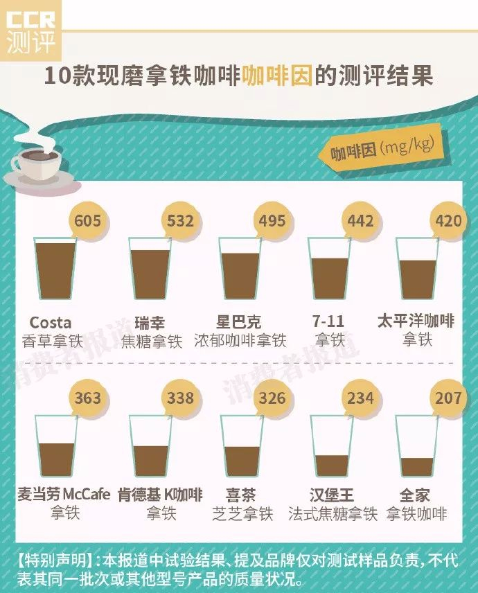 结果显示,Costa、瑞幸、星巴克、7-11、太平洋咖啡咖啡因含量较高,提神作用较好。